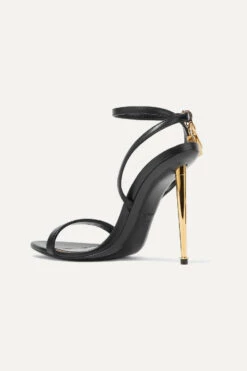 TOM FORD’s barely-there sandals are named for the gold-tone ‘Padlock’ and key embellishments that dangle from the ankle straps. They’ve been made in Italy from smooth black leather and set on polished, pin-thin 105mm heels that match the pendants. Wear yours with evening dresses or cropped tailoring.