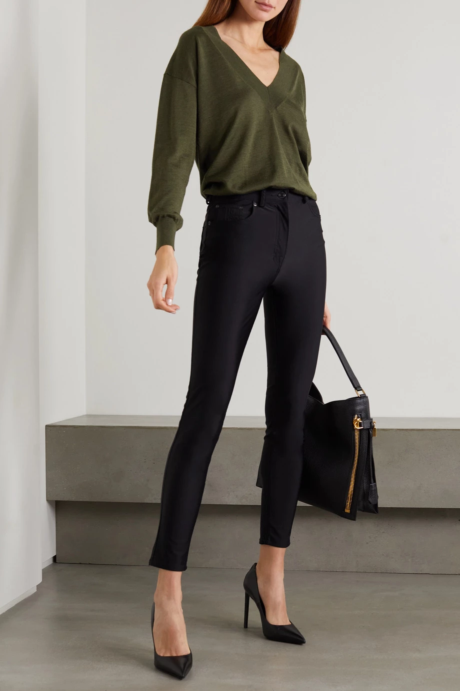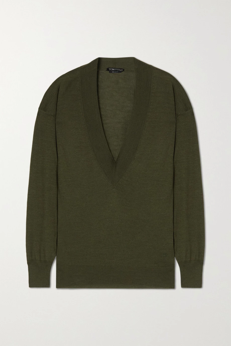 TOM FORD’s sweater has been spun in Italy with cashmere and silk yarns for a luxuriously soft, cozy feel. It’s designed in a slightly loose silhouette and outlined with ribbed trims along the deep V-neckline. Underpin it with anything from a turtleneck to a lacy camisole.