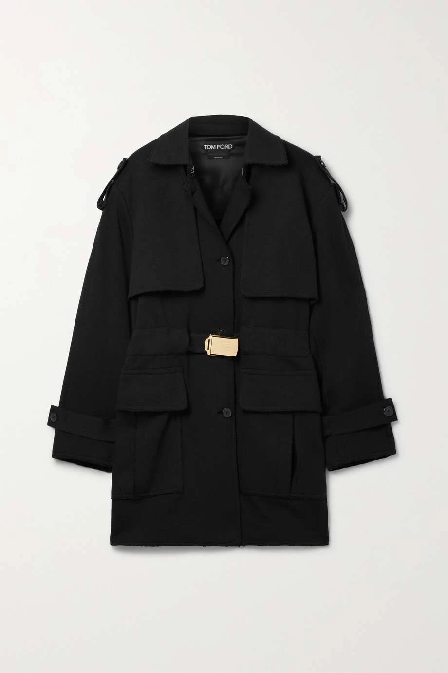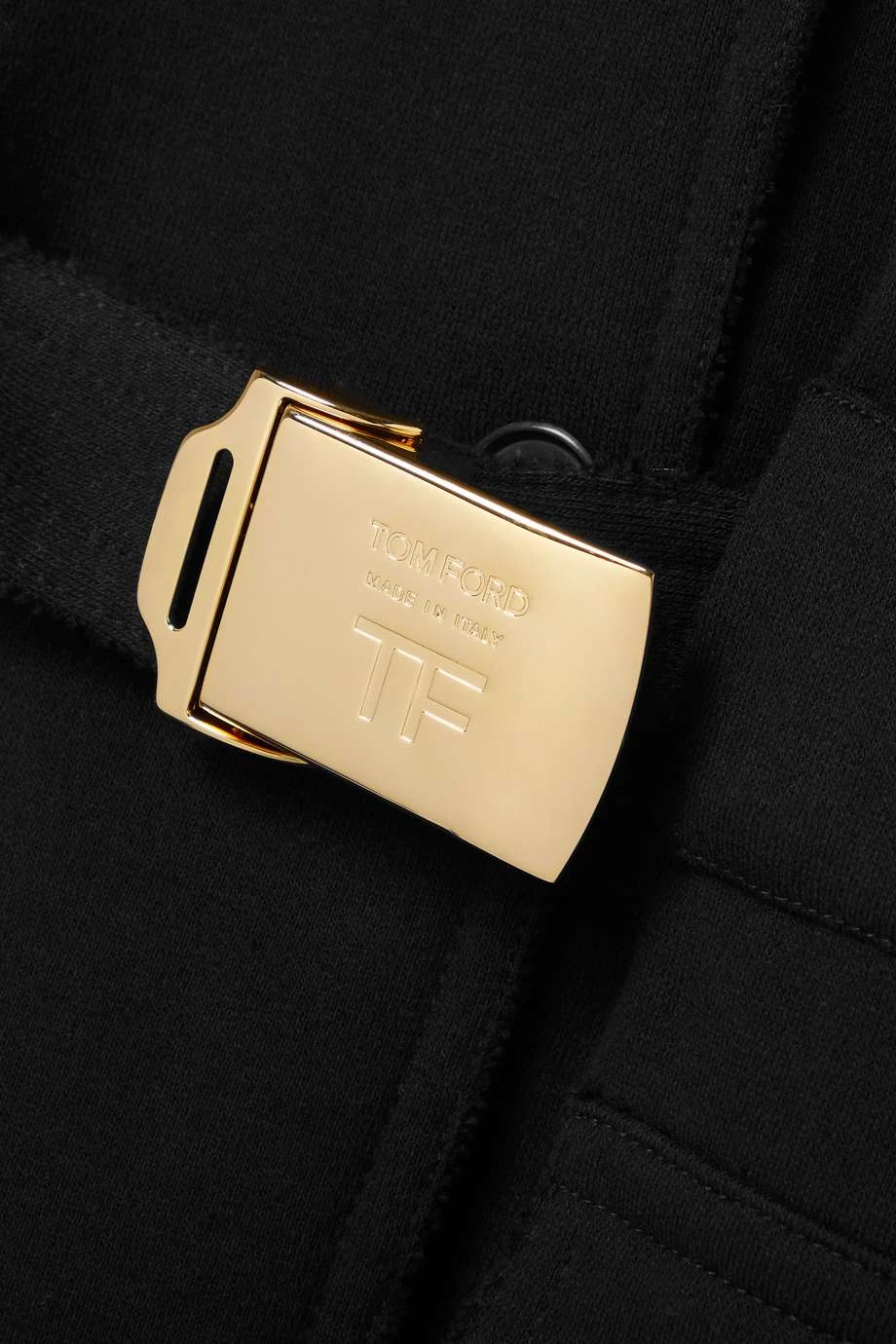 TOM FORD’s designs are both timeless and powerful. This short trench coat has been made in Italy from cotton-jersey in a versatile black hue. It’s detailed with a logo-stamped belt buckle in gold-tone metal that’s polished to a high gleam.