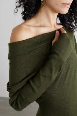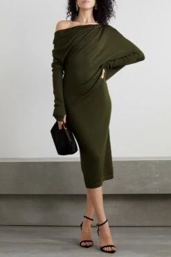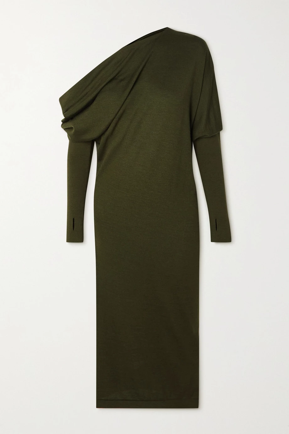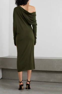 TOM FORD’s draped dress has an asymmetric neckline that elegantly rests off the shoulder. Made in Italy from soft cashmere and silk-blend, it has a body-skimming fit that’s balanced by relaxed dolman sleeves and thumbhole cuffs. Wear yours with sandals and a statement bag.