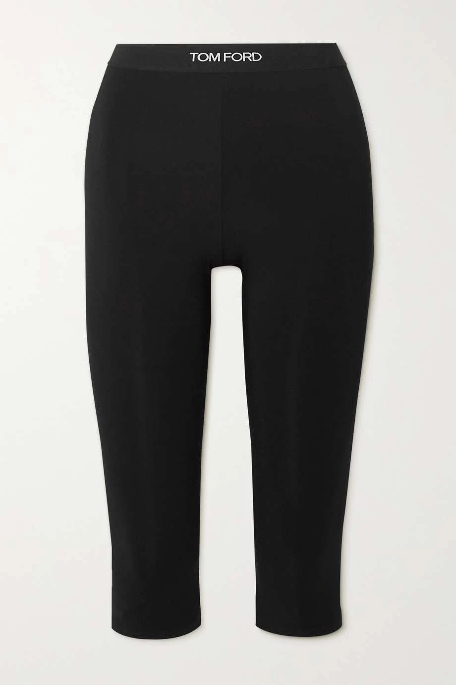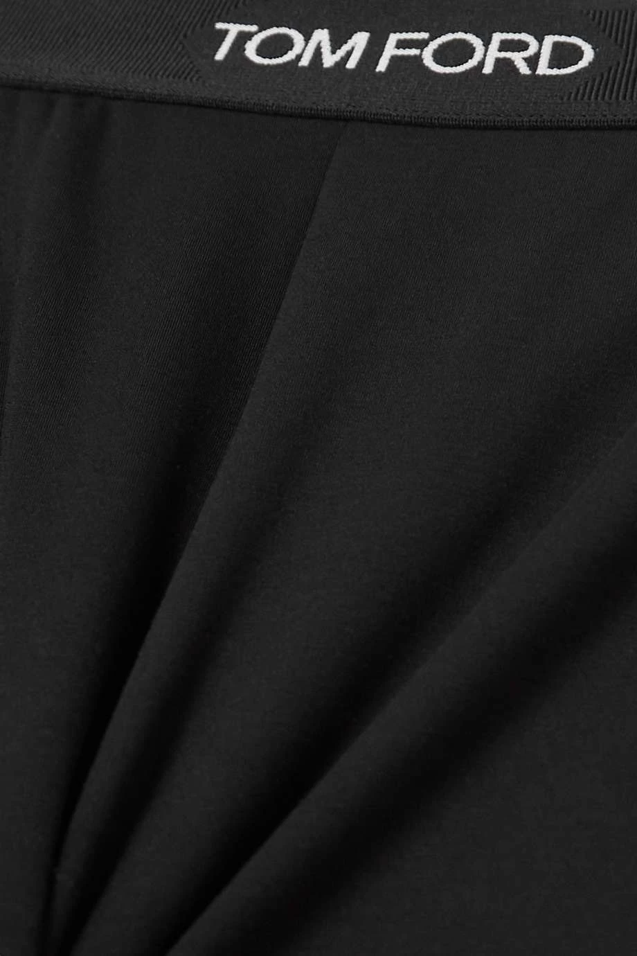 TOM FORD’s sporty, longline shorts are made from soft stretch-modal jersey in versatile black. They have a signature logo-jacquard waistband that calls back to the brand’s lingerie. Style yours with a loose tee at home or a tailored jacket when you go out.