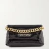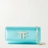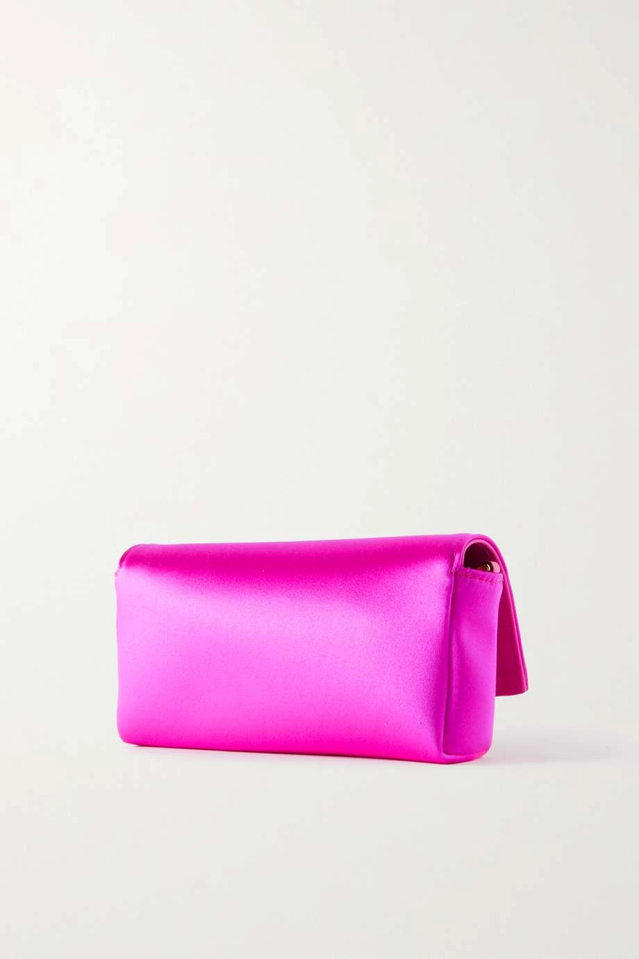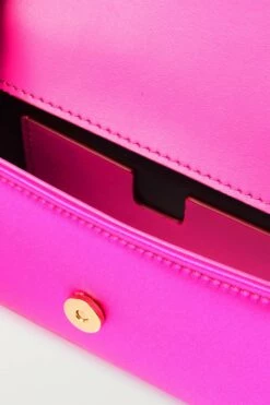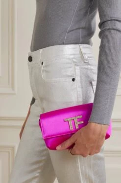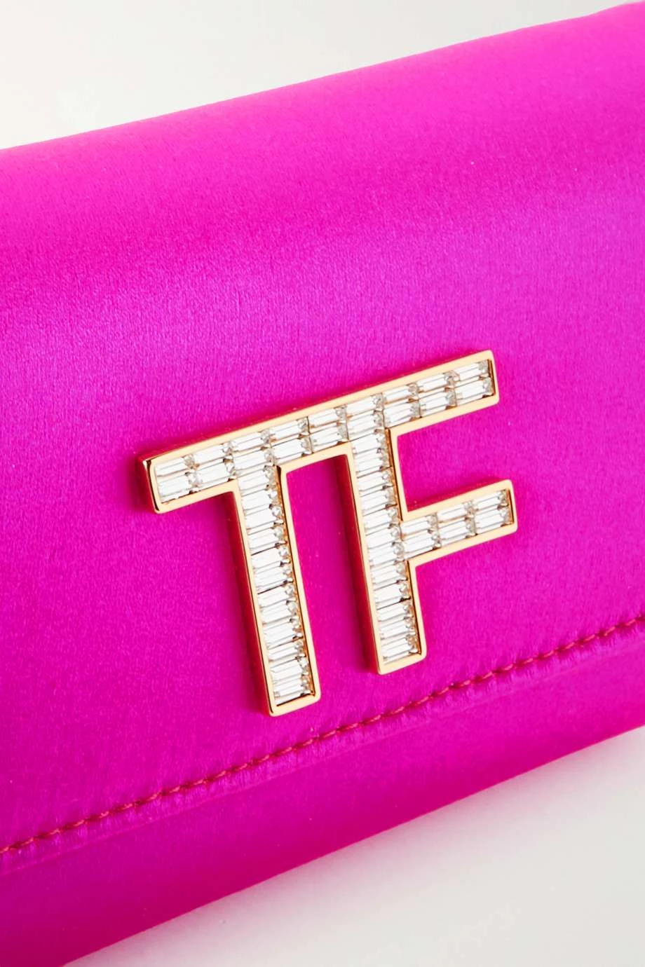 TOM FORD’s shoulder bag is adorned with the label’s ‘TF’ logo inlaid with sparkling crystals, giving it a glamorous feel. It’s made from smooth satin in a vivid hot-pink hue and has a compact interior with a notched slot for your ID or credit card. Detach the slim chain strap to carry it as a clutch.