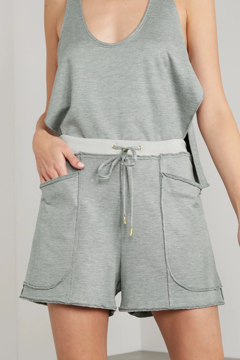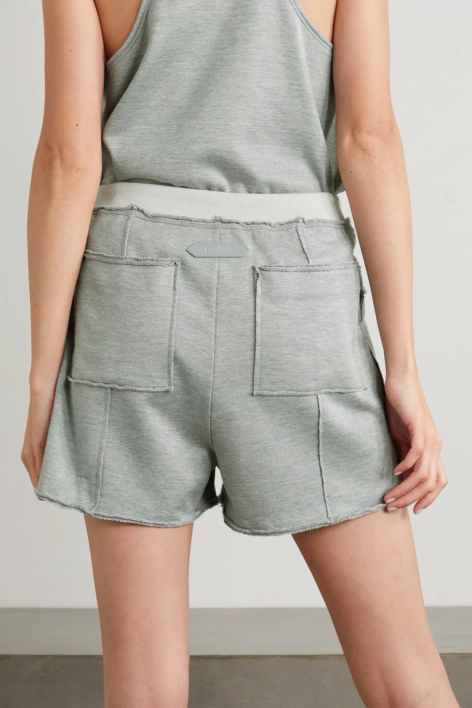 TOM FORD’s gray shorts are made from silk and cotton-blend jersey that feels so luxurious – the loopback texture makes it extra soft, too.They have raw seams and an elasticated drawstring waist. The gold-tone hardware is a typically glamorous finishing touch.