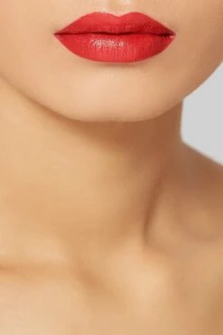 TOM FORD BEAUTY’s ‘Jasmin Rouge’ lipstick is a warm red with a subtle sheen. Enriched with conditioning nut butters and oils, this creamy formula glides on smoothly and stays put for hours. To create this season’s favorite just-bitten look, try brushing a touch of color in the center of your lips and applying a darker shade on top.