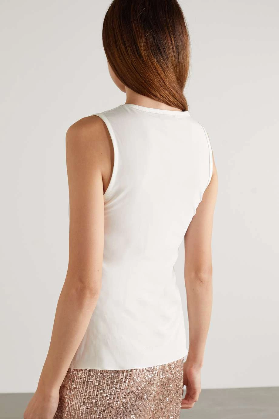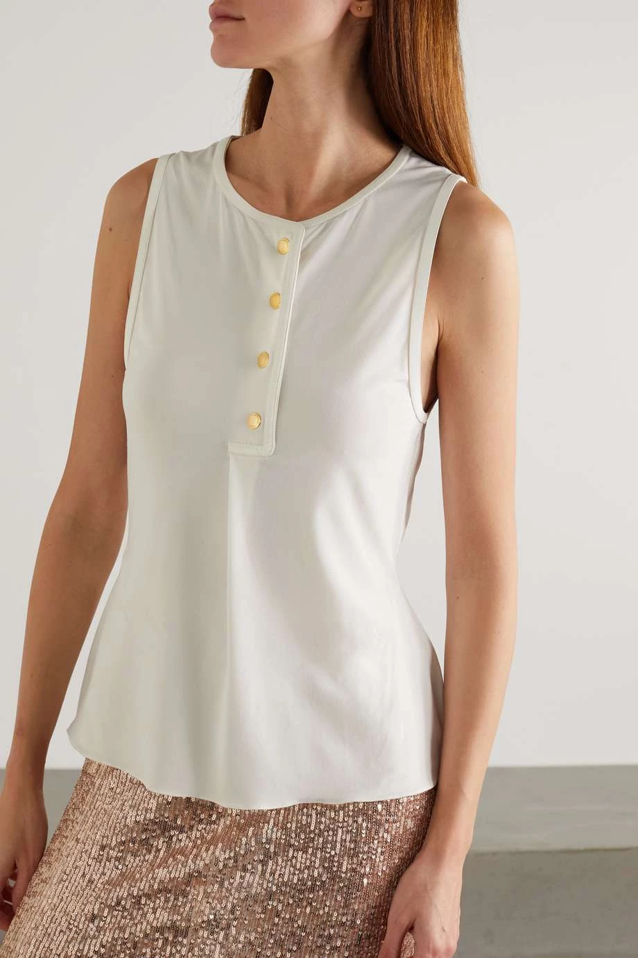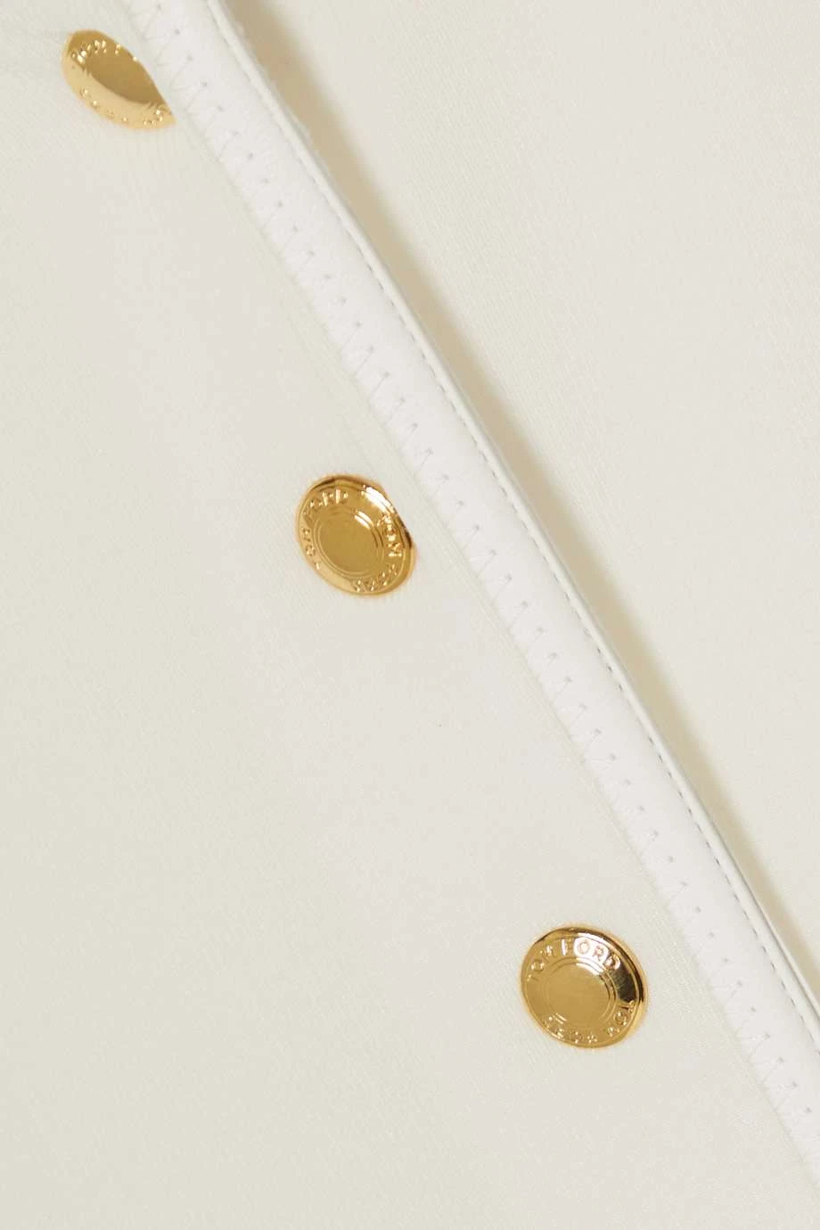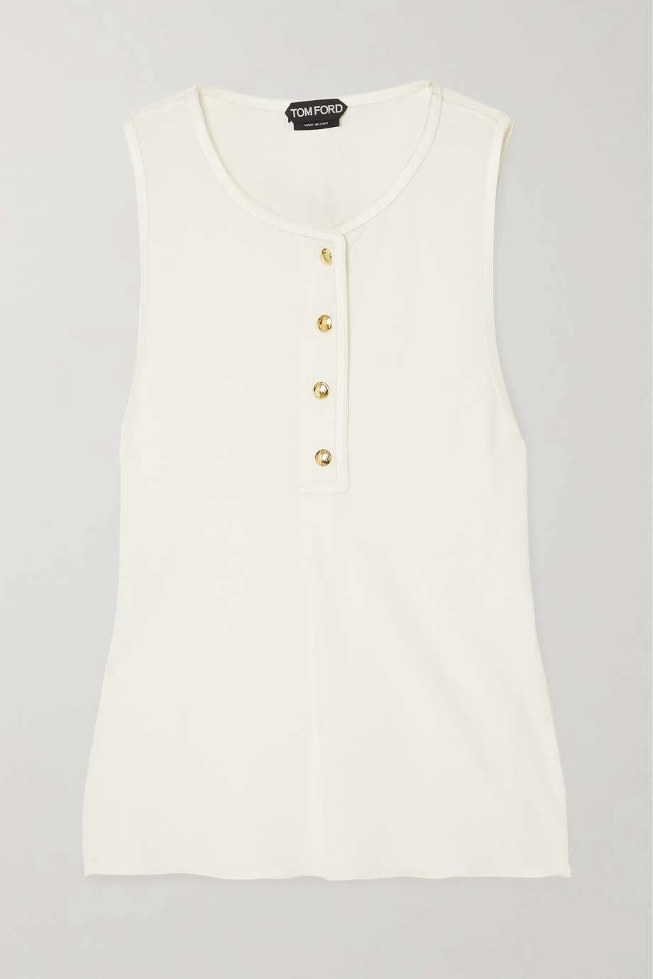 Even TOM FORD’s basics are made from premium materials with precise cuts, and this jersey tank top is no exception. Trimmed with leather and metallic snaps, it’s blended with stretch to enhance the body-hugging fit. Wear yours with jeans or a pencil skirt.