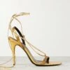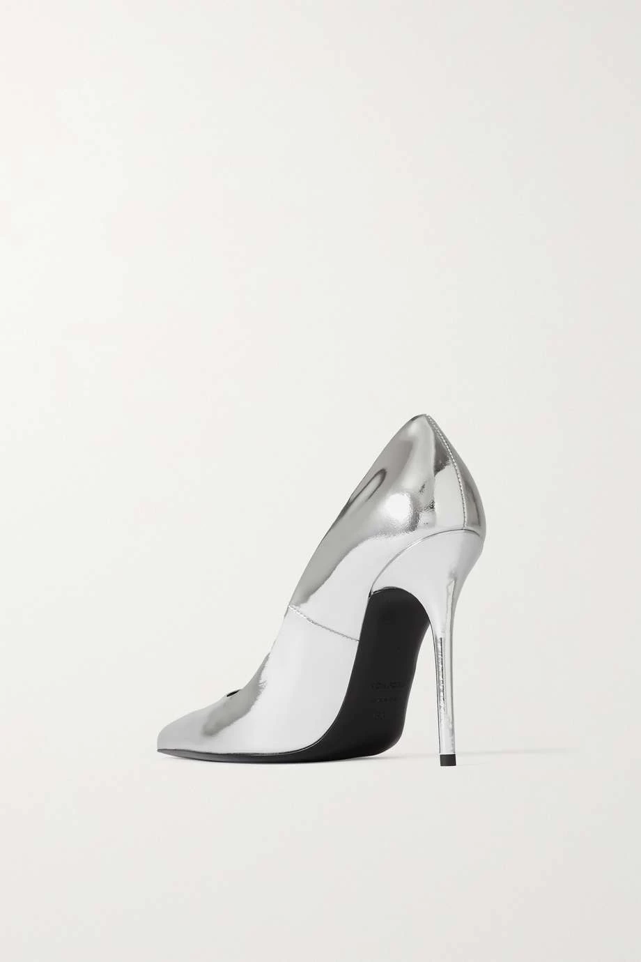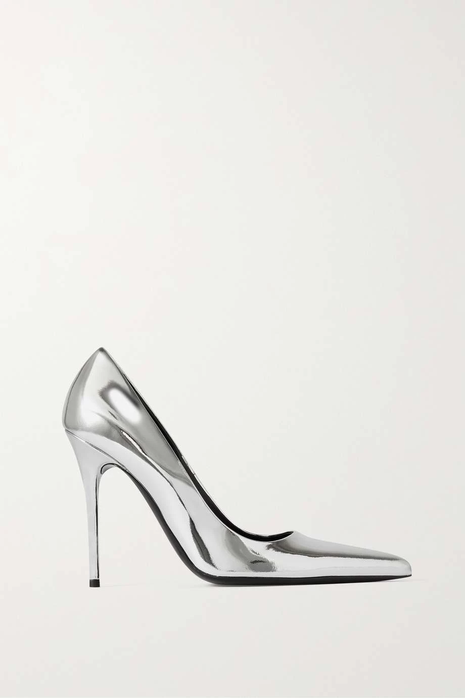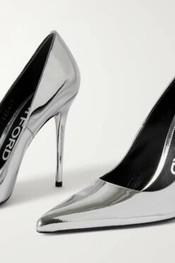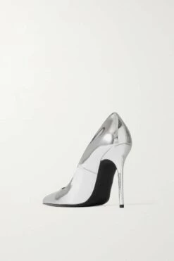 TOM FORD’s runway collections always bring the glamour. Certain to command attention, these high-heeled pumps are made from soft silver leather with a mirror-like shine. They have classic pointed toes.