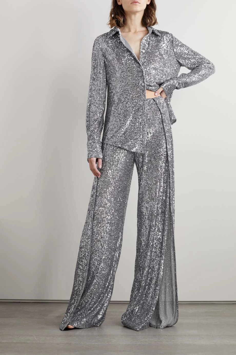 TOM FORD’s pants are drenched with glittering sequins that’ll catch light from all angles. Made in Italy from lightweight tulle, they have floaty wide legs emphasized by dramatic splits. The silk-blend lining gives them a smooth feel against the skin.