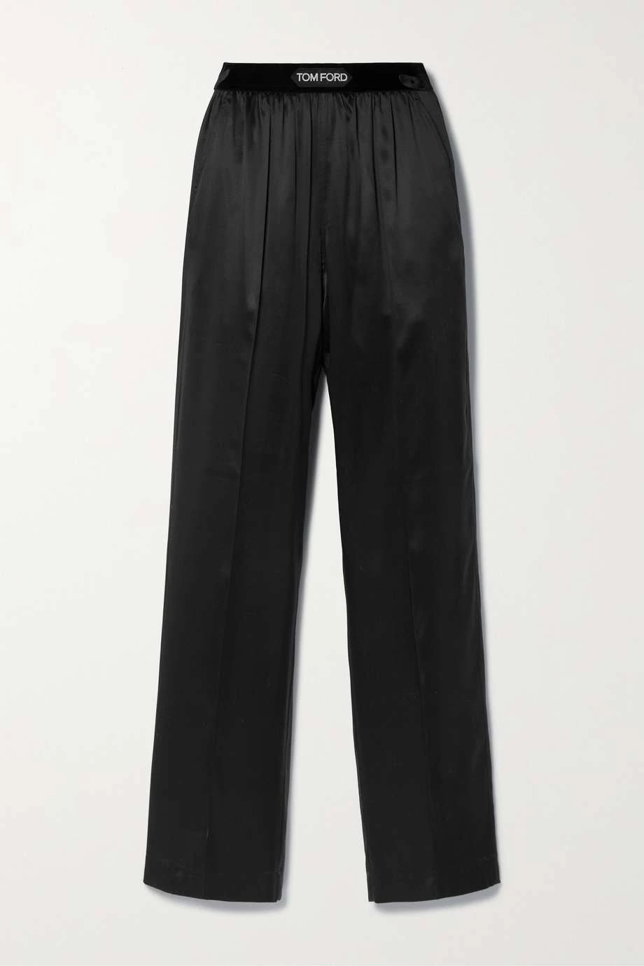 Expertly tailored in Italy, TOM FORD’s pajama-style pants are suitable for nice dinners or daytime looks. They’re made from lustrous silk-satin blended with stretch and have an elasticated, logo-detailed velvet waistband. Balance the relaxed legs with heeled sandals.