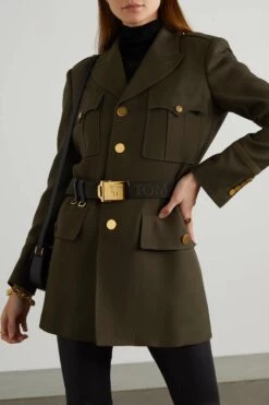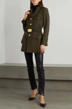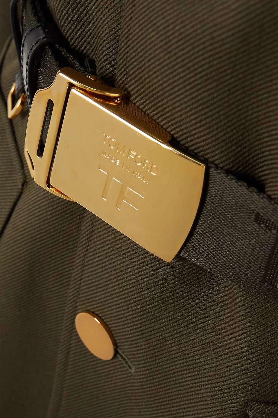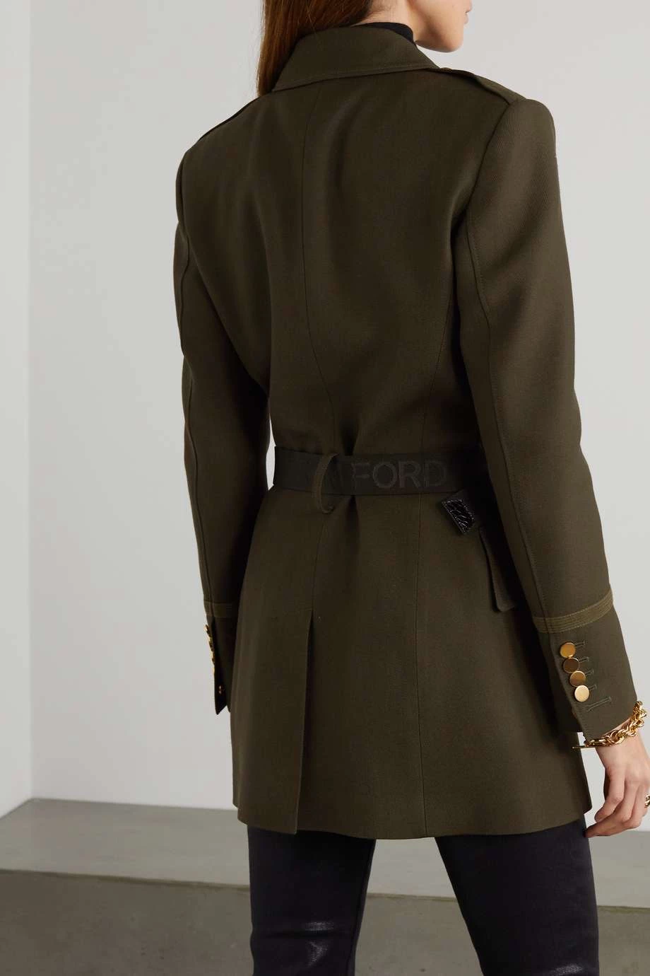 TOM FORD’s military-inspired jacket is tailored from wool-blend twill in a powerfully structured shape – look at the sharp shoulders and nipped-in waist. It’s detailed with gold buttons and a logo-woven belt for a glamorous, contemporary feel.