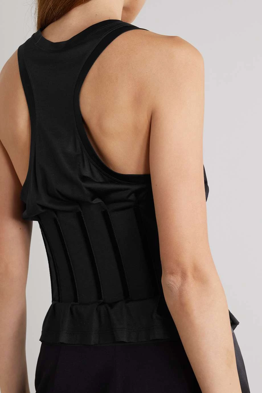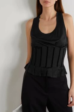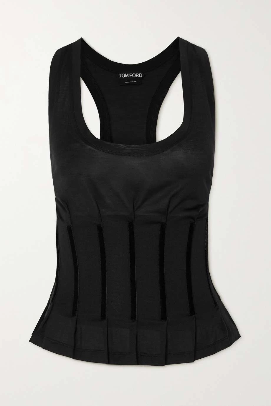 The humble tank really made its mark on the Spring ’22 runways, and TOM FORD’s take on the wardrobe staple is perfect for those who like their tops to come with a side of glamor. It’s cut from black silk-jersey and has velvet boning for shape and texture.