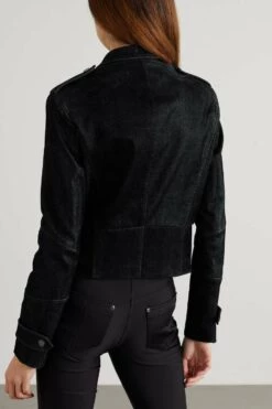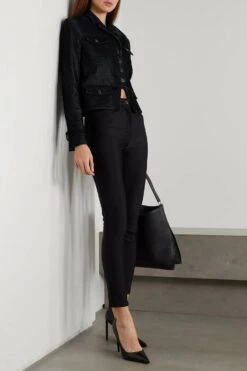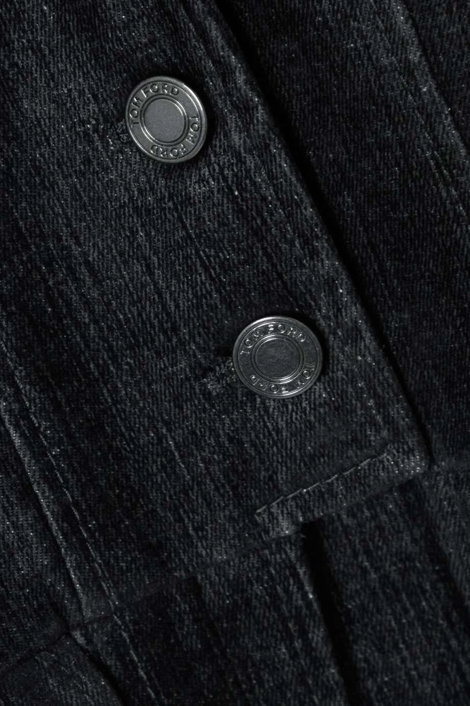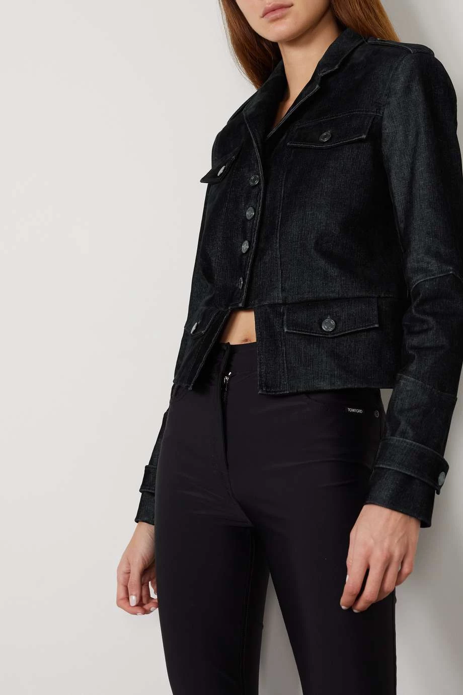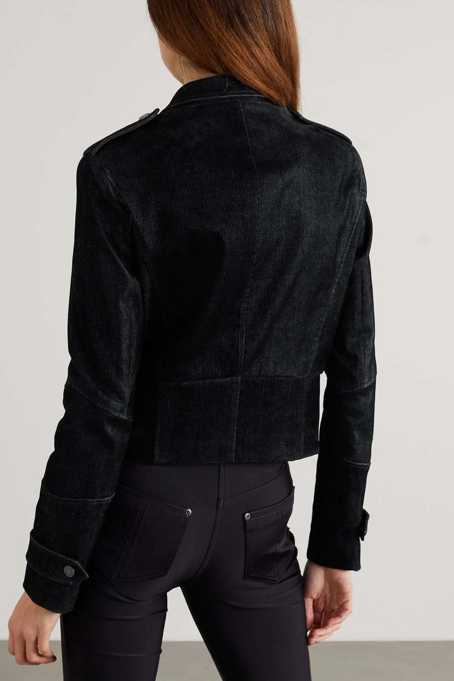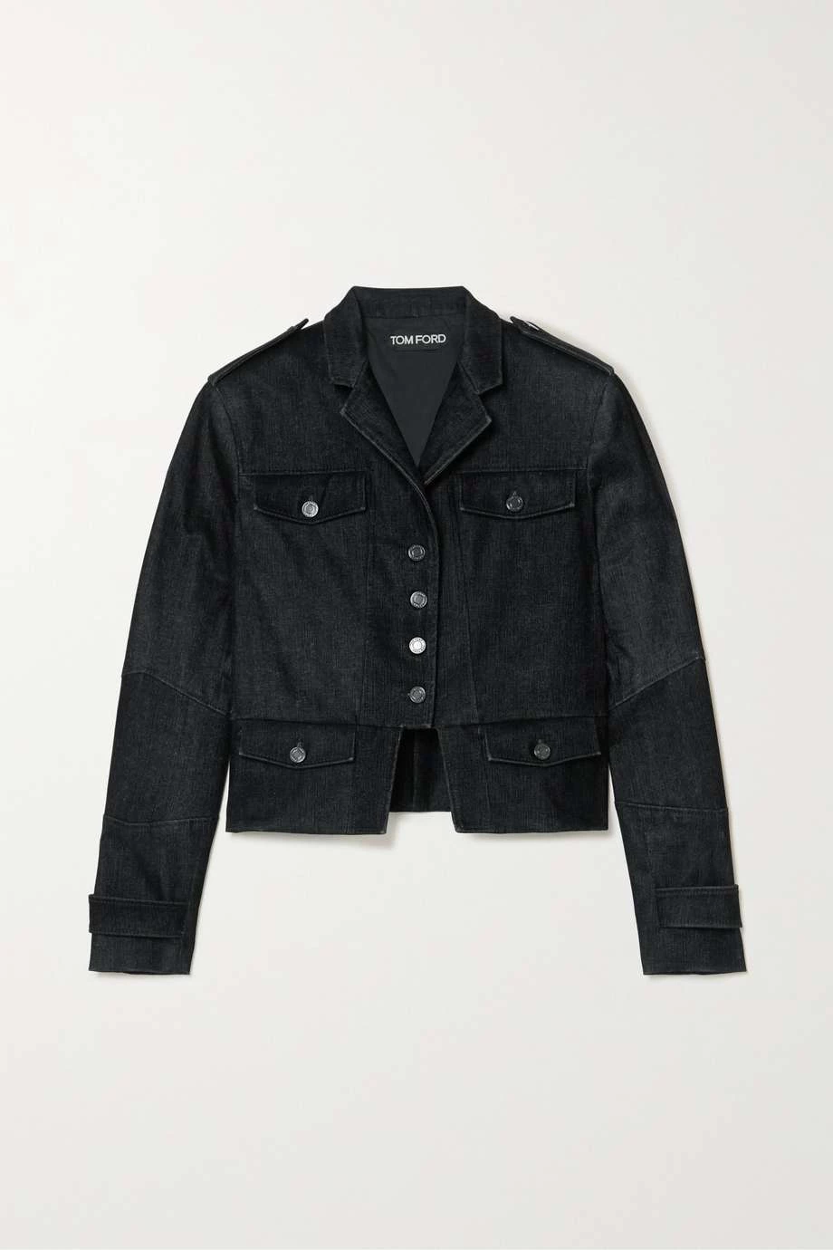 TOM FORD’s military-inspired jacket looks like denim at first glance but it’s actually made from warm wool-blend velvet. The cropped, notched hem reveals a glimpse of your midriff.