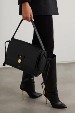 TOM FORD updates its signature ‘Padlock’ shoulder bag in a medium size that’ll come in handy on busy days – think the essentials plus a tablet or water bottle. Propped on a flat base to keep the structured shape, it’s been made in Italy from textured-leather. Attach the longer strap to wear it cross-body.