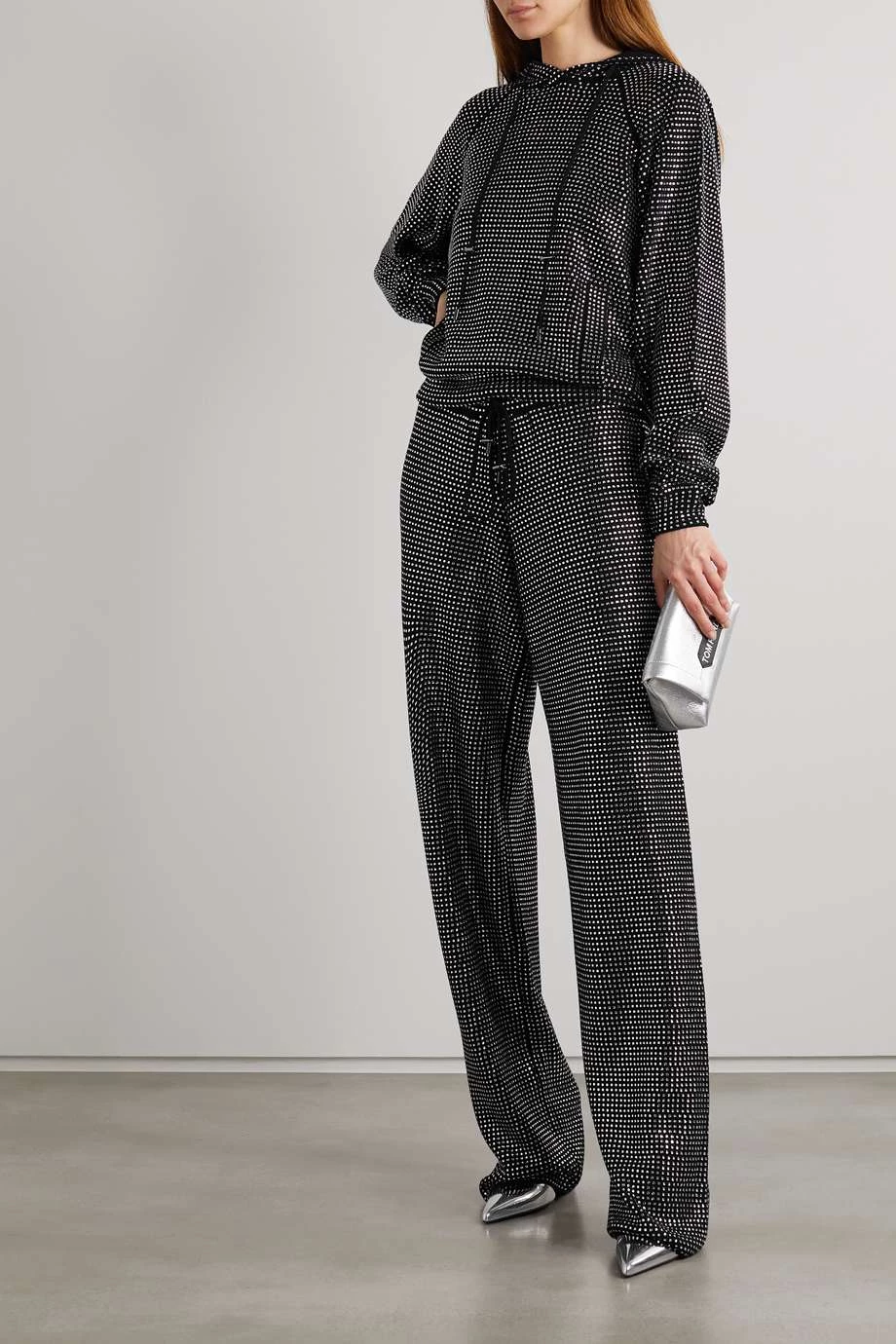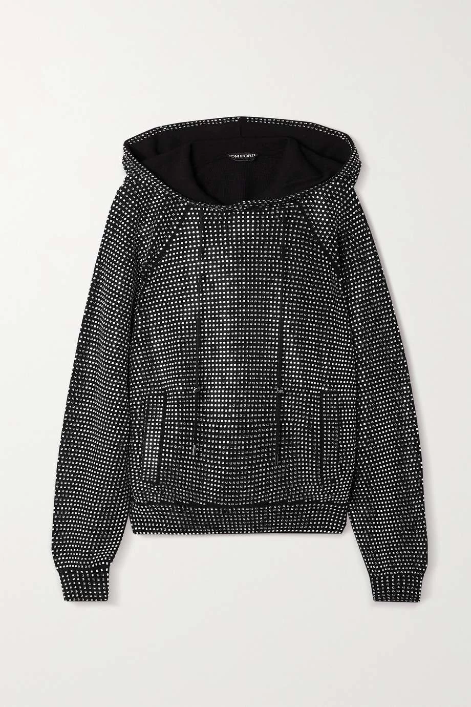 Only TOM FORD could cover a hoodie with shiny crystals and make it pass for nothing but chic. Threaded with long drawstring ties, it’s made from soft black cashmere and has two pockets to slip your phone and a lipstick into. Wear it as a coord with the matching track pants in our edit.
