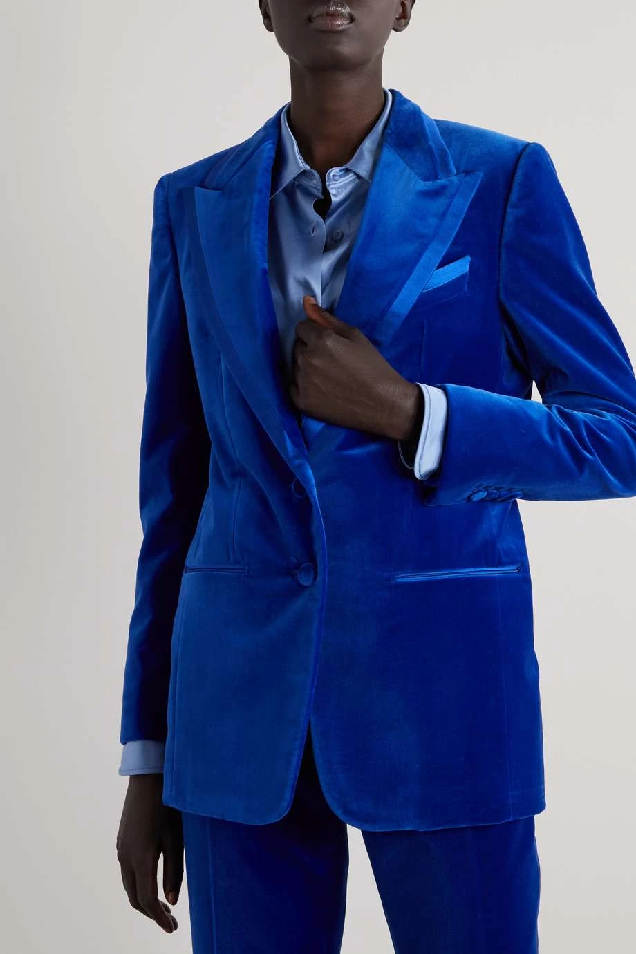 Manhattan glamour is served with a decadent twist in the hands of TOM FORD. This blazer is tailored from plush cotton-velvet that takes on the jewel-toned shade of sapphire blue so beautifully. It’s trimmed with lustrous silk for added elegance.