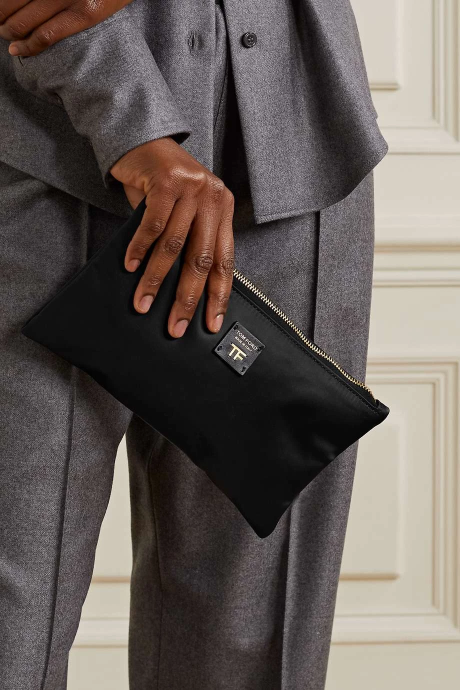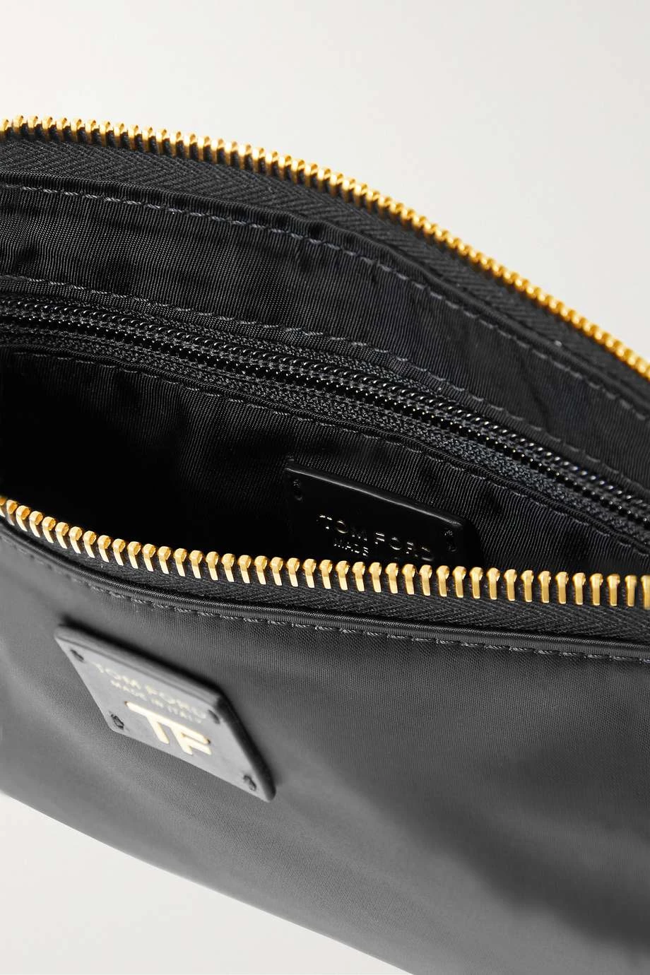 TOM FORD’s sleek pouch is sized to fit the essentials, making it a great choice for nights out. It’s been crafted in Italy from lightweight nylon and topped with a leather patch stamped with the brand’s moniker in gilded lettering.