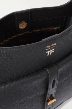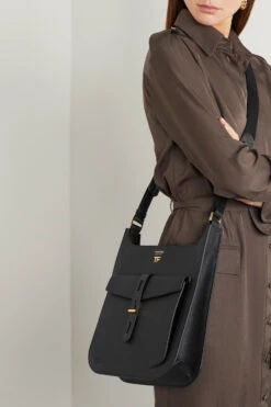 TOM FORD’s ‘T Twist’ shoulder bag has been made in Italy from black textured-leather and fits all your everyday essentials. It has an external pouch that secures with the signature T-bar fastening and keeps your phone and keys easily accessible. The grosgrain strap can be adjusted to your ideal drop.