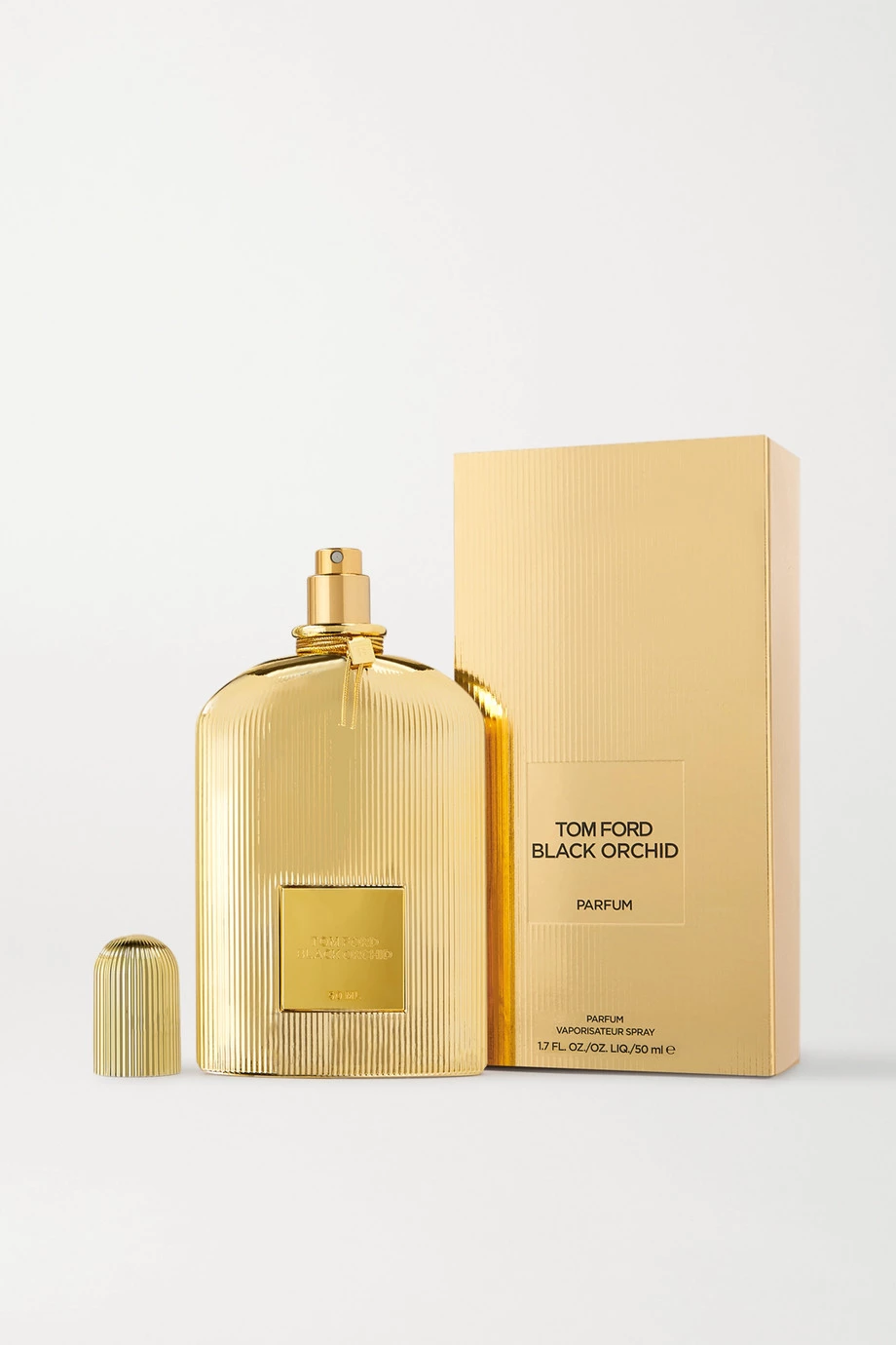 TOM FORD BEAUTY’s ‘Black Orchid Gold’ Eau de Parfum is an update on the brand’s original fragrance. A bold blend of the rare Black Orchid, Ylang Ylang and Black Truffle, it has rich, dark notes including Plum, Patchouli and Rum that give it a lush, heavy finish. The gilded Art Deco-inspired bottle is the designer’s way of bringing glamour back to beauty.