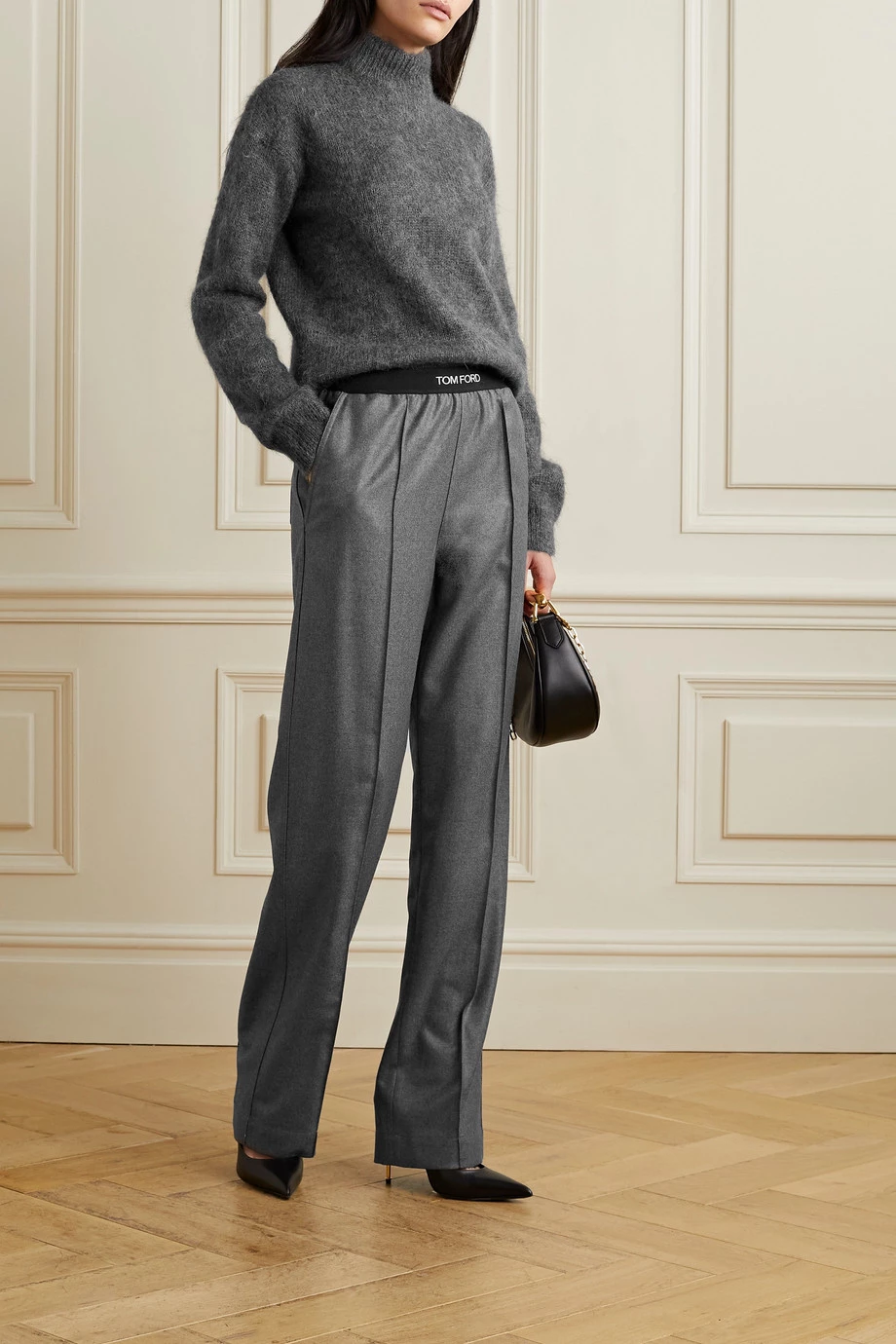 Expertly tailored in Italy, TOM FORD’s versatile pants are suitable for nice dinners or to instantly elevate daytime looks. They’re made from soft cashmere-twill in a dark-gray mélange and have an elasticated, logo-detailed waistband. Balance the relaxed legs with heeled sandals.